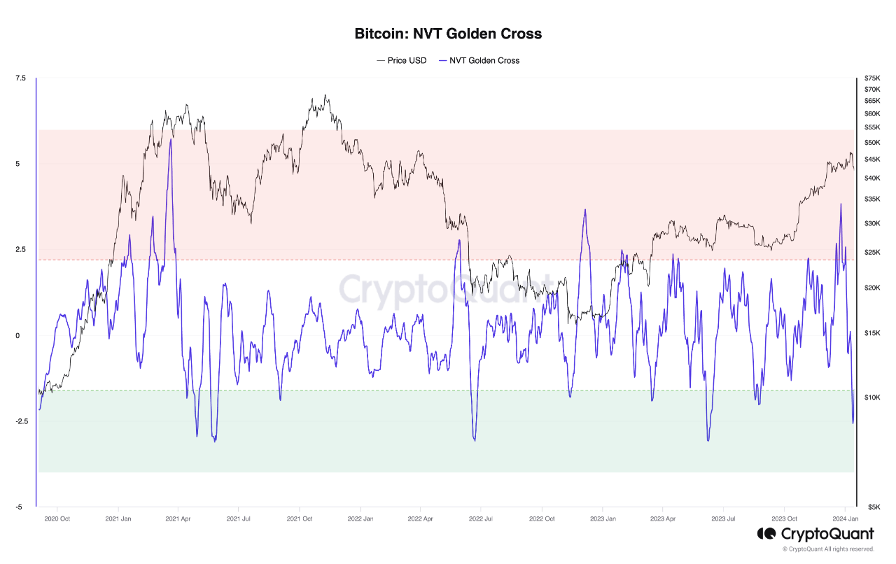 Data shows the Bitcoin NVT Golden Cross indicator has recently dipped inside the undervalued zone, a sign that could be bullish for the price.