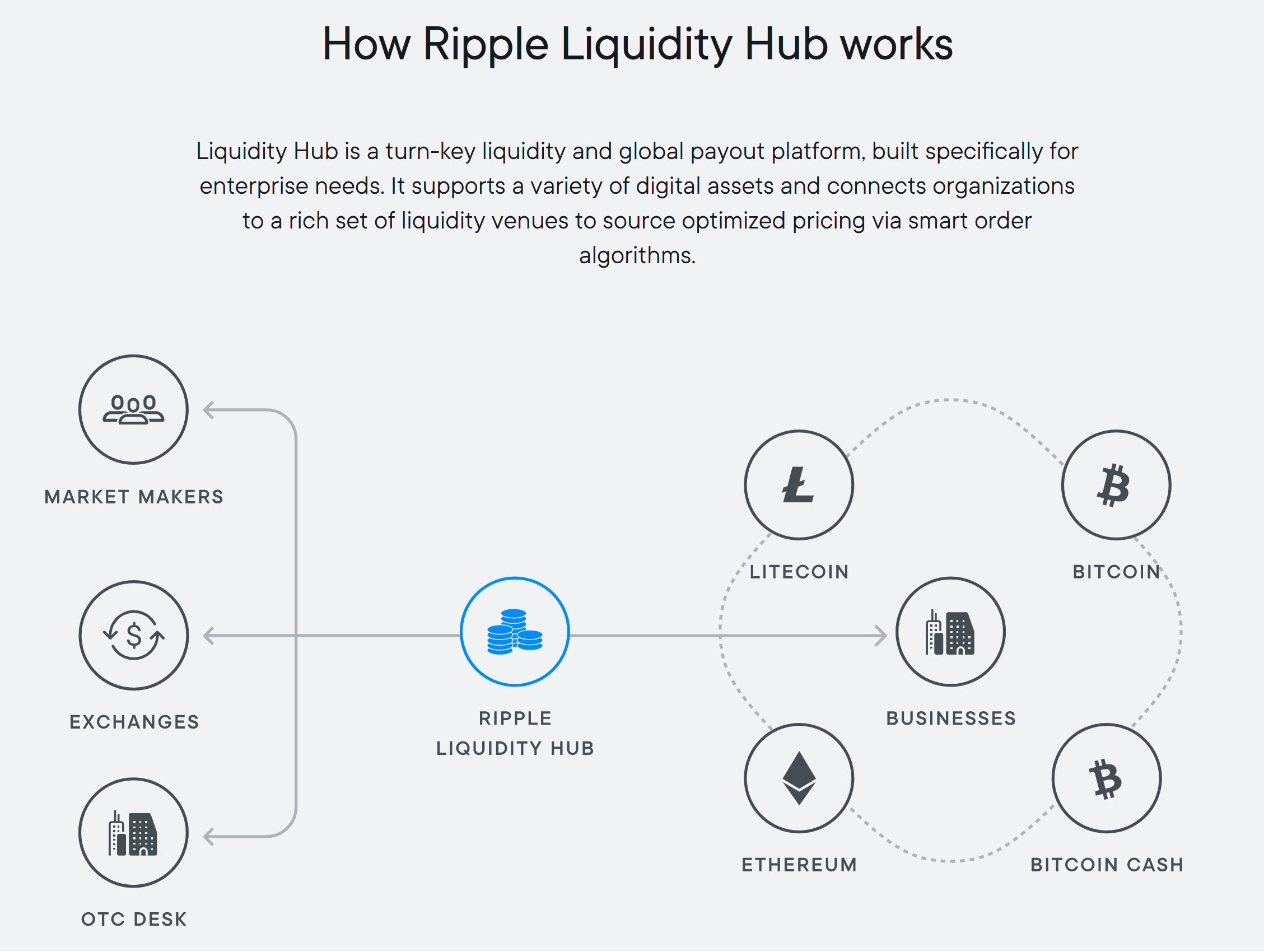 In its commitment to interoperability and the inclusion of various digital assets, the Ripple Liquidity Hub initially supports a diverse range of digital assets including BTC, ETH, LTC, ETC, BCH, and XRP, with the availability varying by geography. Ripple plans to further expand its offerings, demonstrating its commitment to fostering an inclusive and competitive crypto market.
