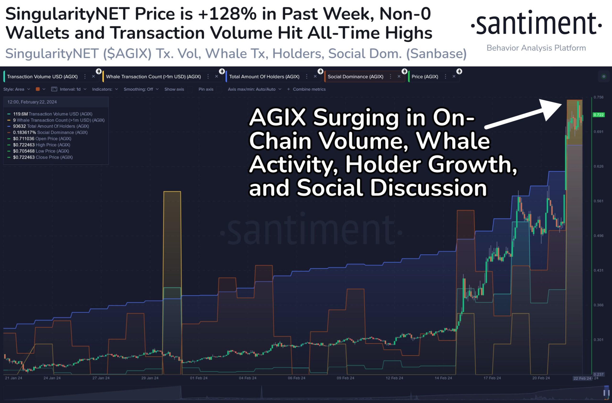 In a new post on X, the on-chain analytics firm Santiment has talked about how SingularityNET has fared in its underlying metrics, with its market cap more than doubling in its latest rally.
