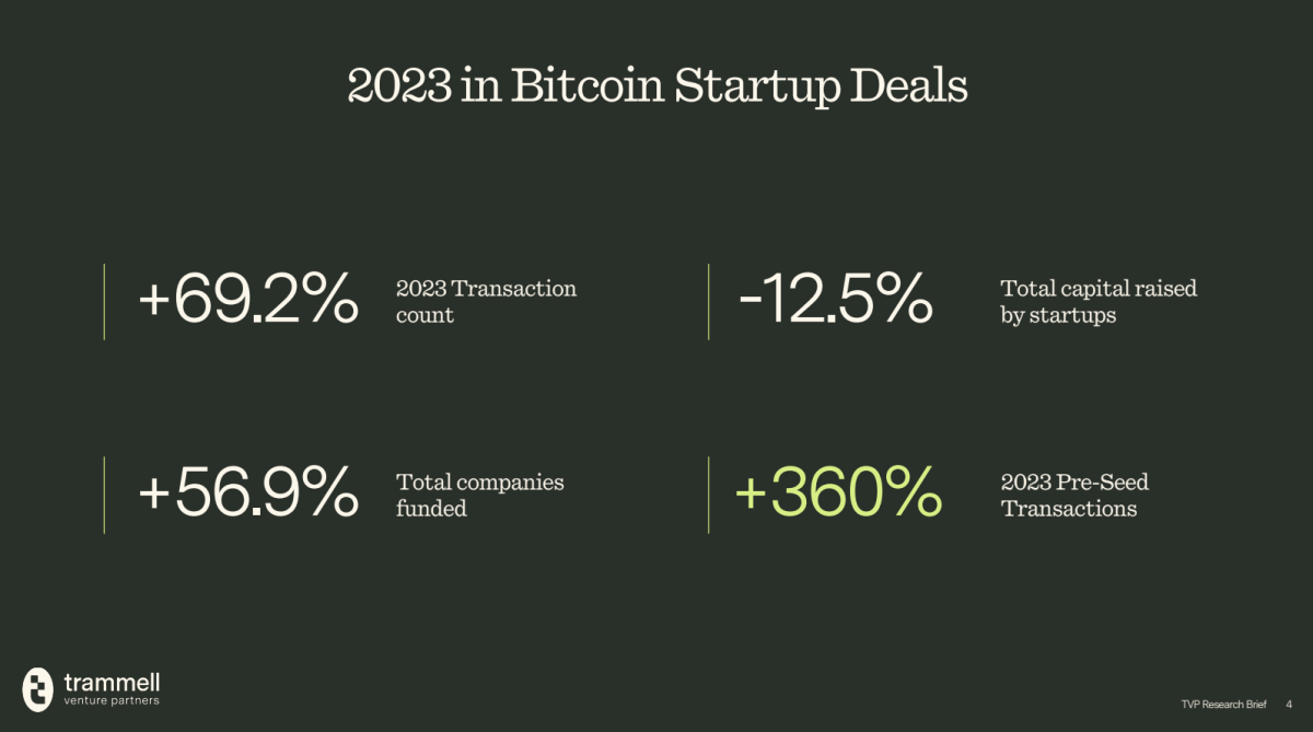 Contrary to the broader startup landscape experiencing a decline in exit activity to a 10-year low in 2023, Bitcoin-native startups showed resilience and growth, marking a 69.2% increase year-over-year. TVP’s data revealed that these early-stage Bitcoin startups collectively raised nearly $1 billion between 2021 and 2023, signifying a substantial interest and investment in this sector.