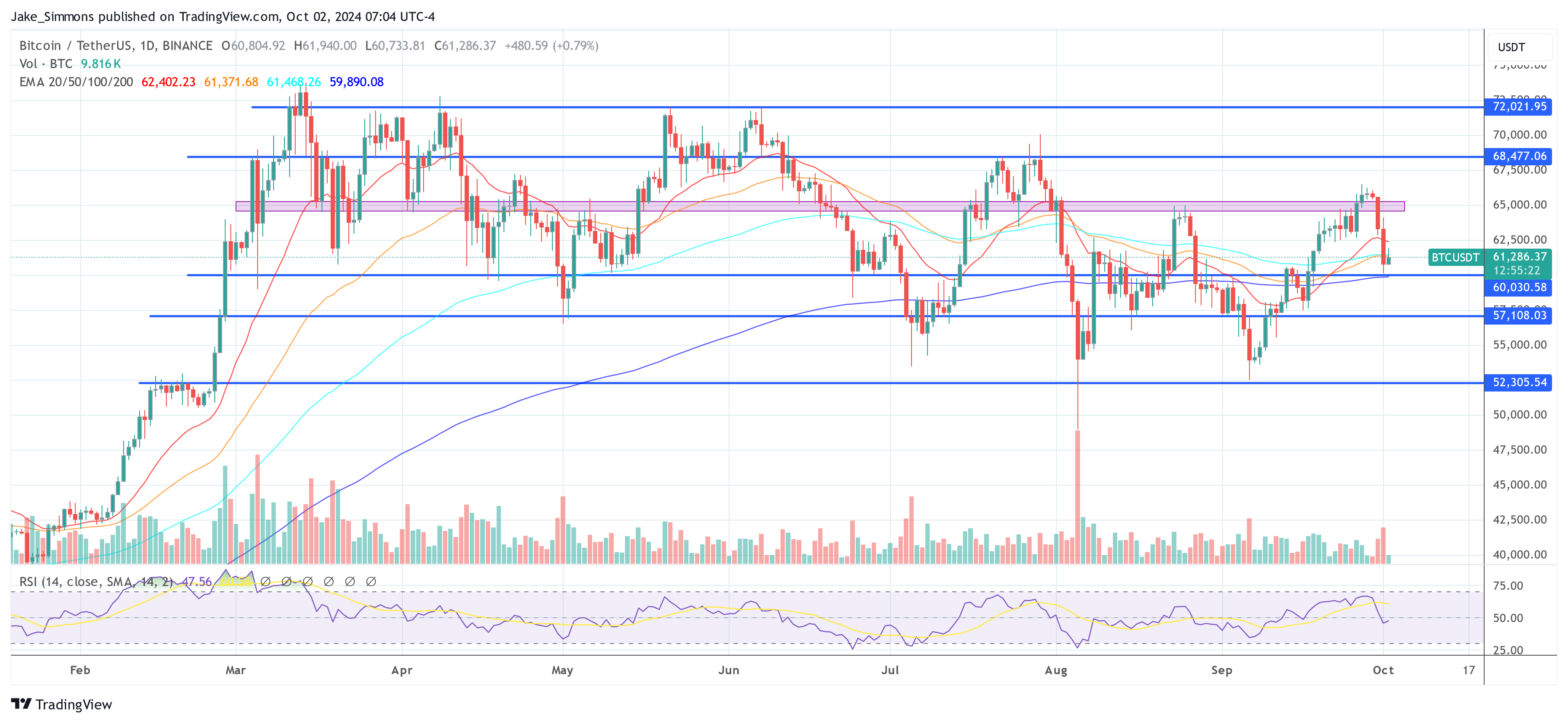 At press time, BTC traded at $61,286.