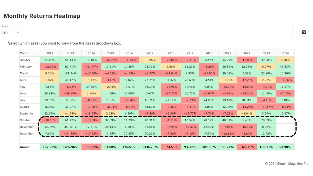 As 2024 comes to a close, Bitcoin investors are eagerly eyeing the final quarter of the year, traditionally known for positive price action. With many speculating that a bullish rally may be on the horizon, let’s break down the historical data, analyze trends, and weigh the possibilities of what BTC’s price action might look like by the end of this year.
