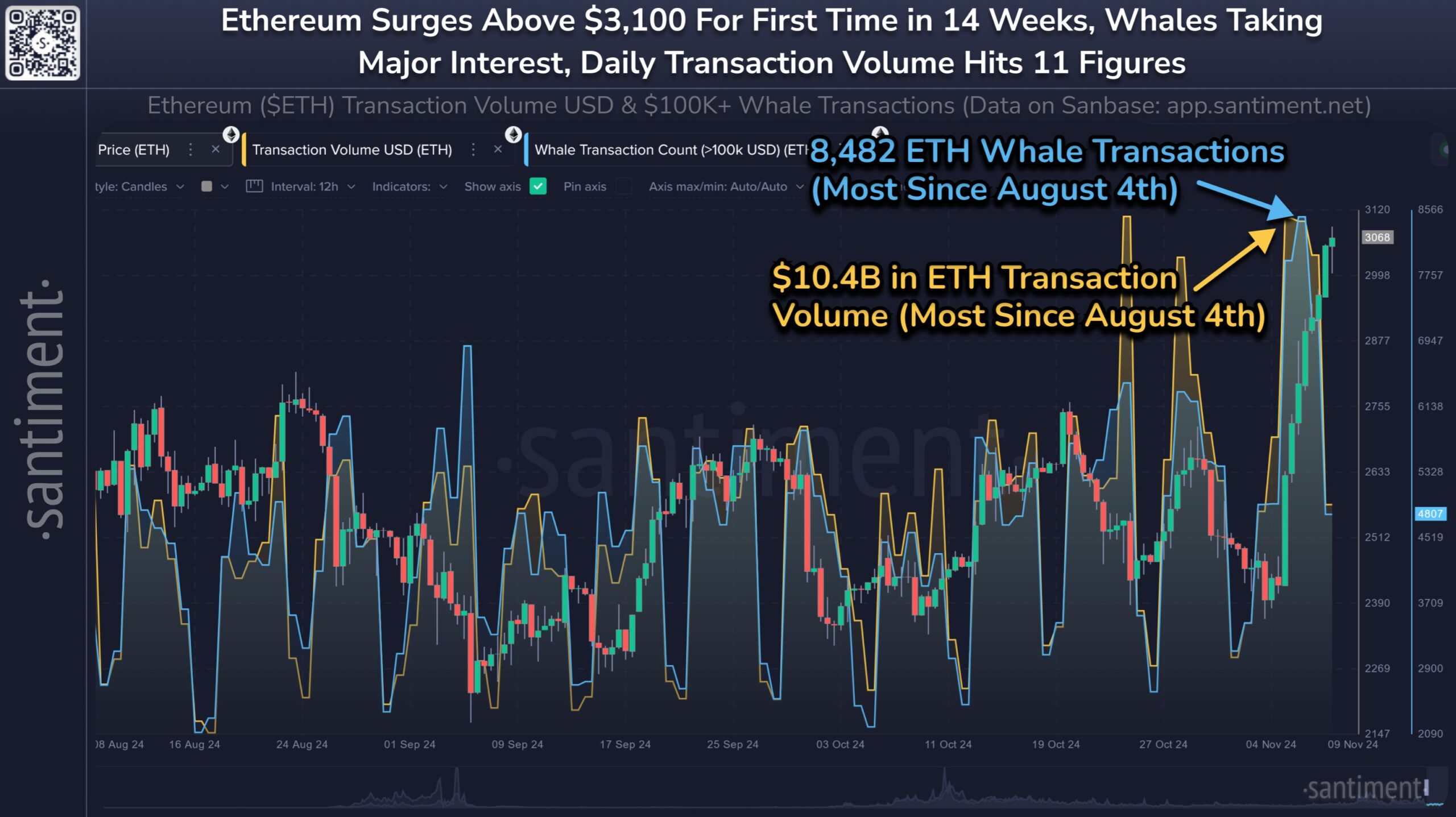 Ethereum Transaction Volume & Whale Transfer Count Have Spiked Recently