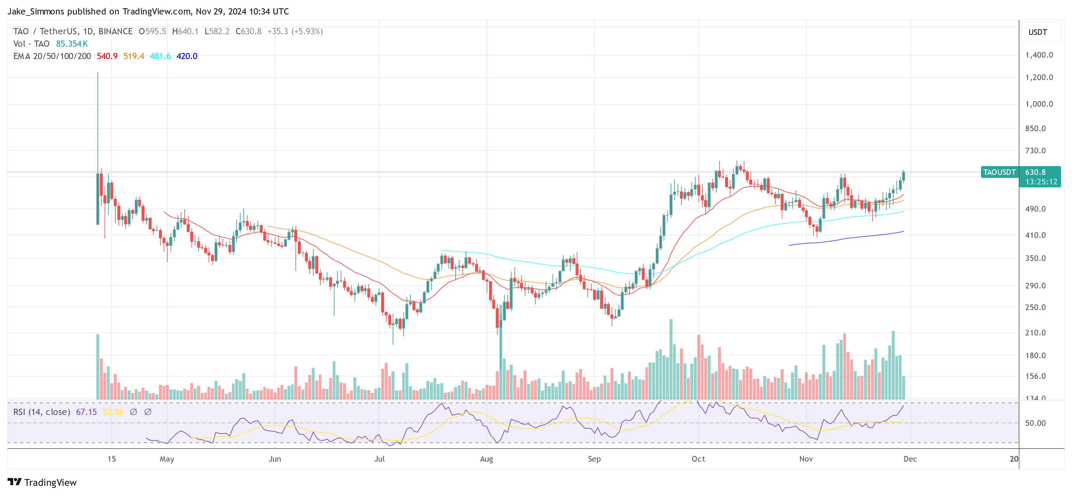 First on the list is Bittensor (TAO), which he describes as the AI market leader. Bittensor focuses on decentralizing AI research and has already seen significant adoption in scientific communities. “With the recent rollout of EVM compatibility, the network has taken a huge step forward, opening the door for developers to build DeFi ecosystems and unlock new use cases,” Deutscher noted.