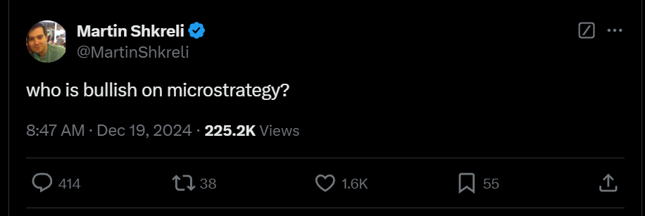 Shkreli doubled down on his stance despite admitting that shorting MicroStrategy has been a painful position due to its stock’s stellar performance this year.