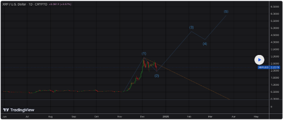 In a TradingView post, TradingSides stated that the XRP price retest of the $2 level could be the end of the second wave in the Elliot Wave of XRP’s bullish cycle. With Wave 2 likely done, Wave 3’s impulsive move to the upside will take place anytime from now. The crypto analyst outlined five factors on which this bullish potential is based.
