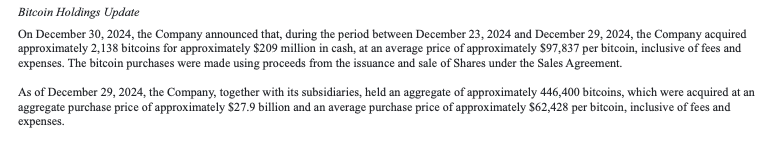 MicroStrategy’s Latest Buying period during 23rd trough 29th of December, 2024
