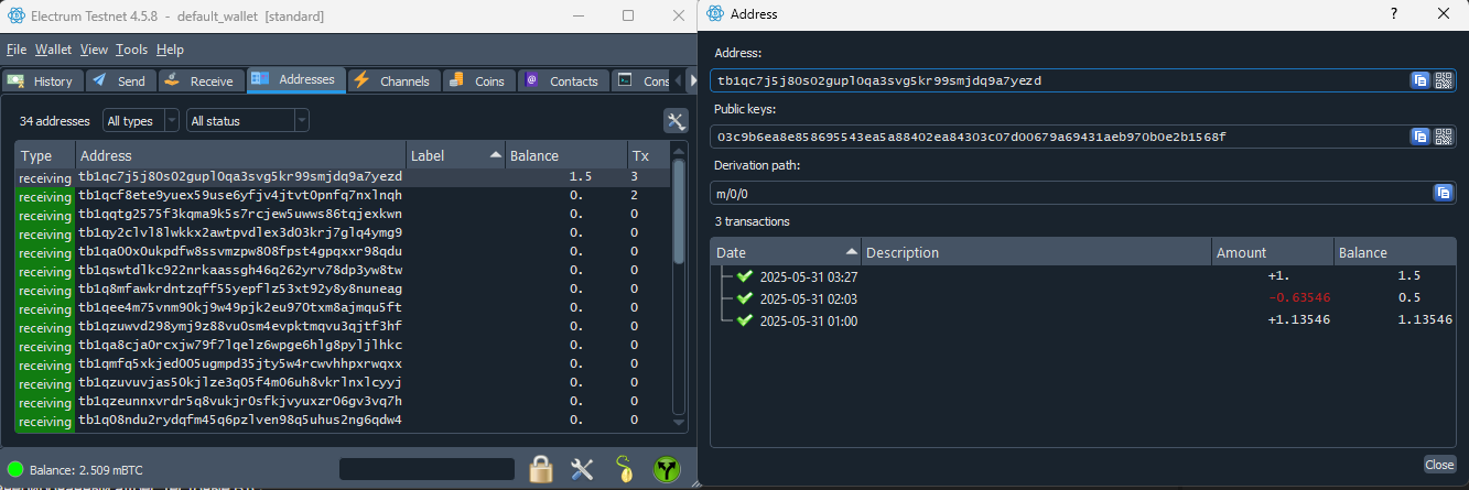 Address: tb1qc7j5j80s02gupl0qa3svg5kr99smjdq9a7yezd