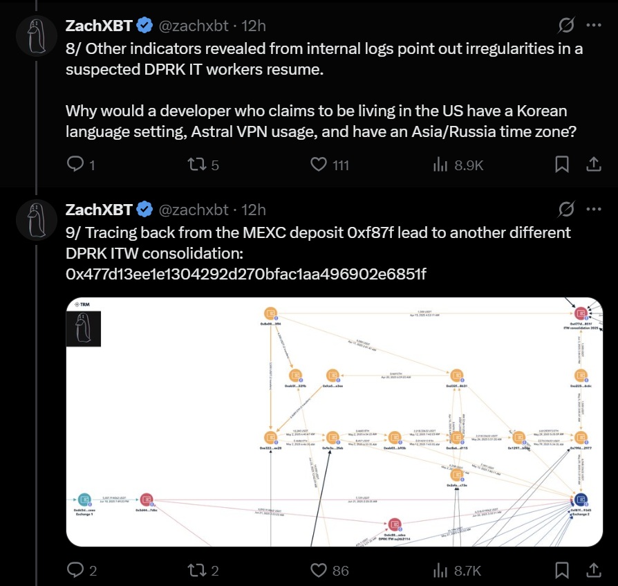 My analysis links both attacks to the same cluster of DPRK IT workers who were likely accidentally hired as developers. pic.twitter.com/85JRm5kLQO
