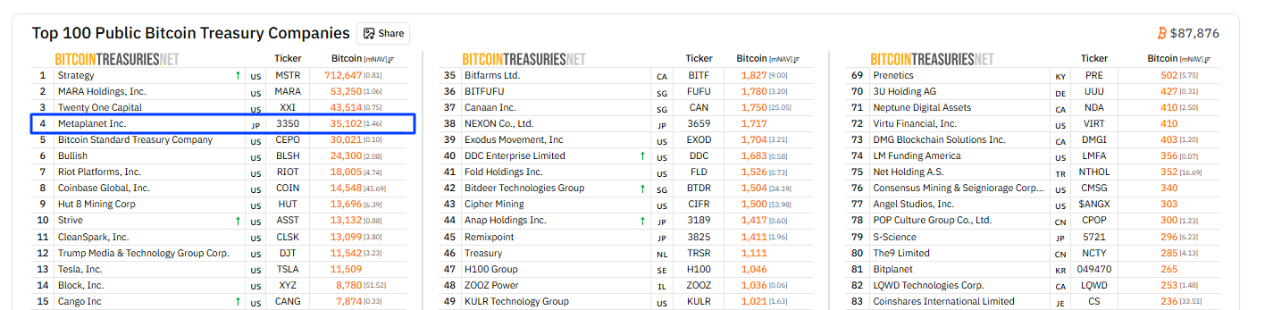 It should be noted that Metaplanet has been very transparent about its Bitcoin buying plan. Out of the $137M, a big chunk will be allocated to buying Bitcoin. When they do, it will cement their position as one of the largest corporate holders globally.